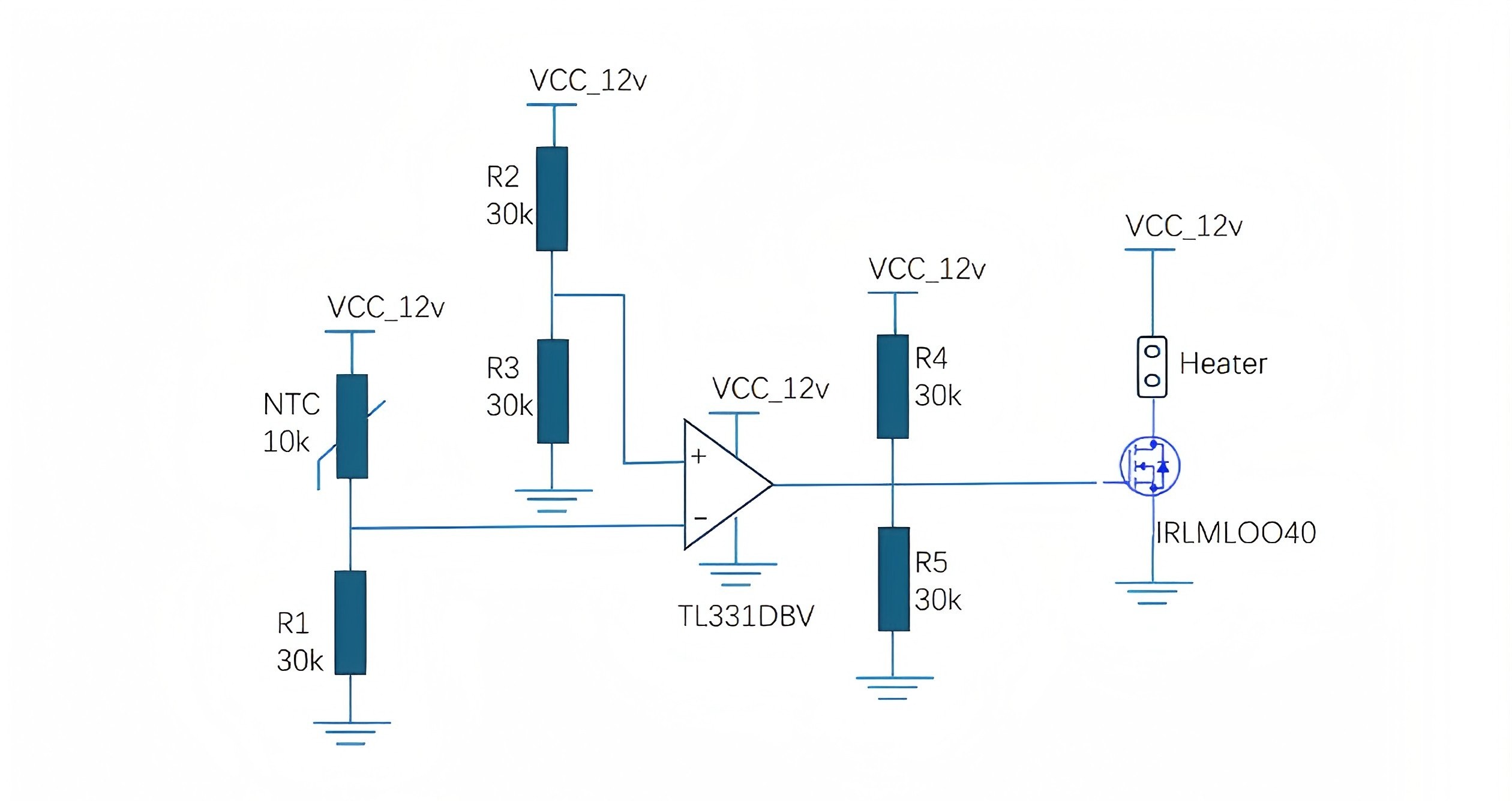 For simple thermal control (no MCU), a comparator circuit can directly interpret NTC voltage levels: